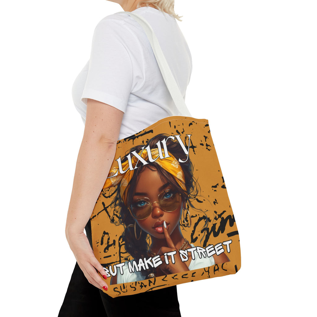 Available in 3 sizes to add both functionality and style, these custom-printed tote bags come with multiple handle colors to match your designs. Made with spun polyester, these bags feature double-stitched seams, cotton webbing straps, and nonwoven laminate lining for high-end durability. Your all-over print is created with dye sublimation for high-end visuals.